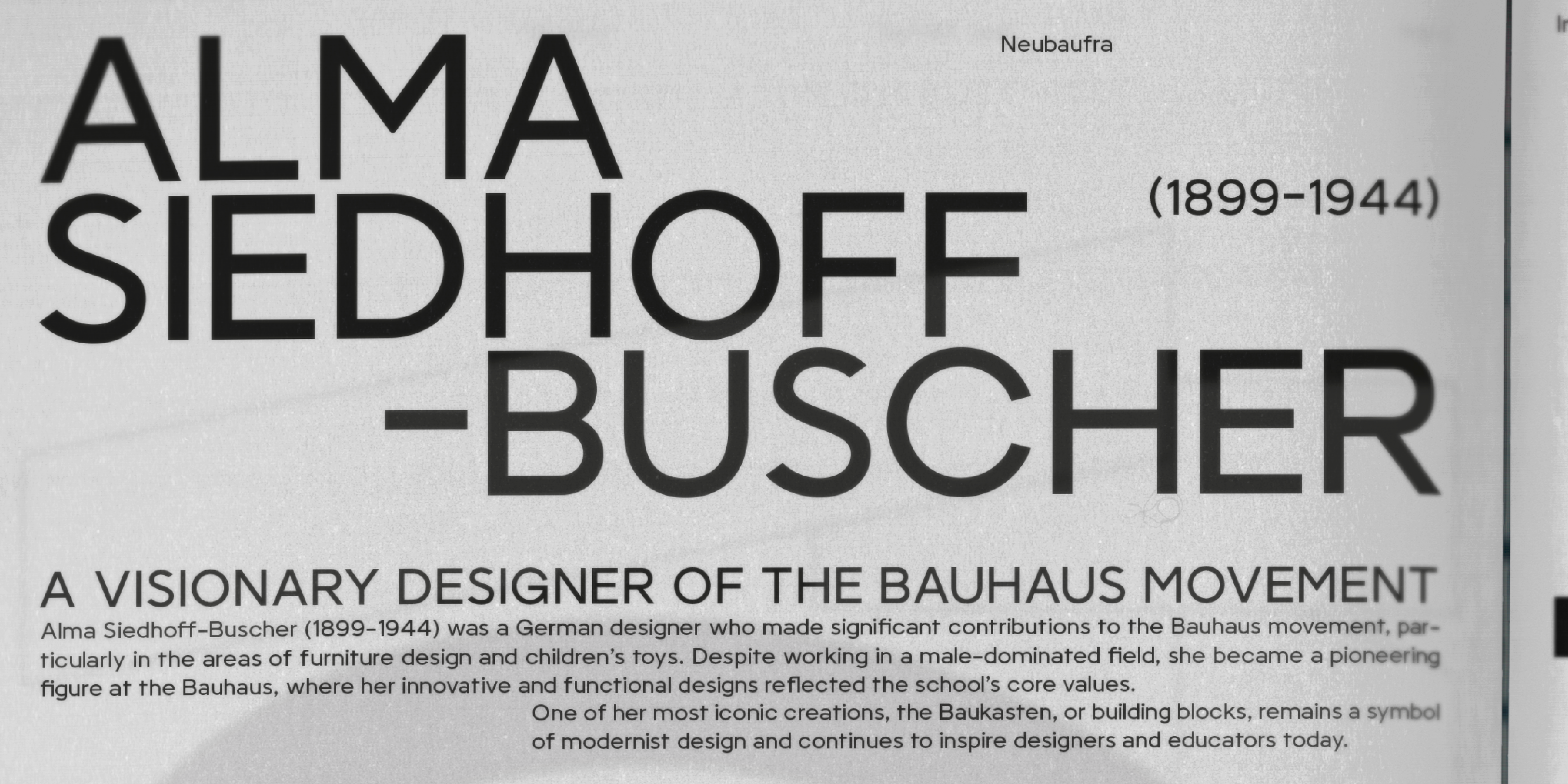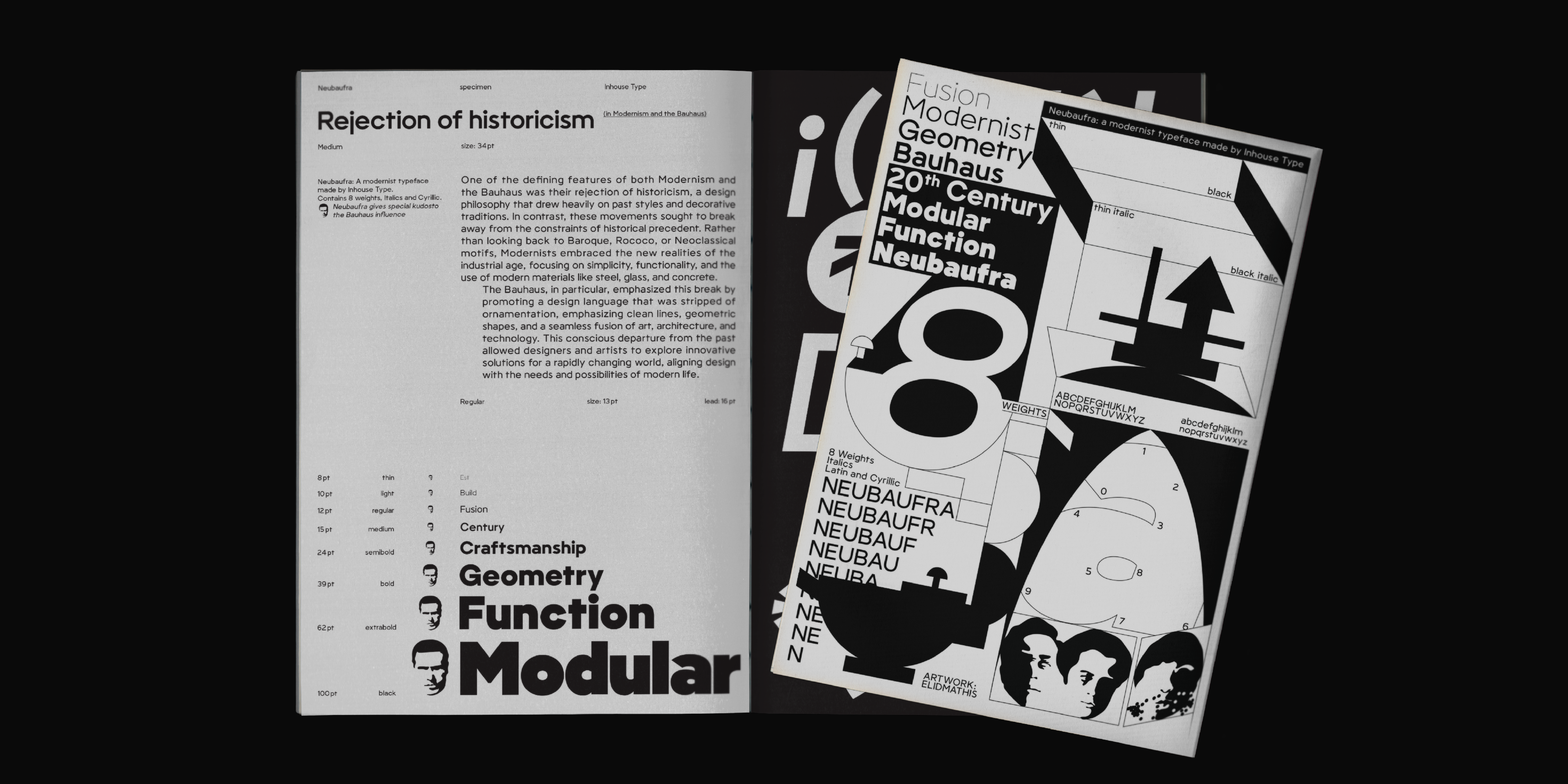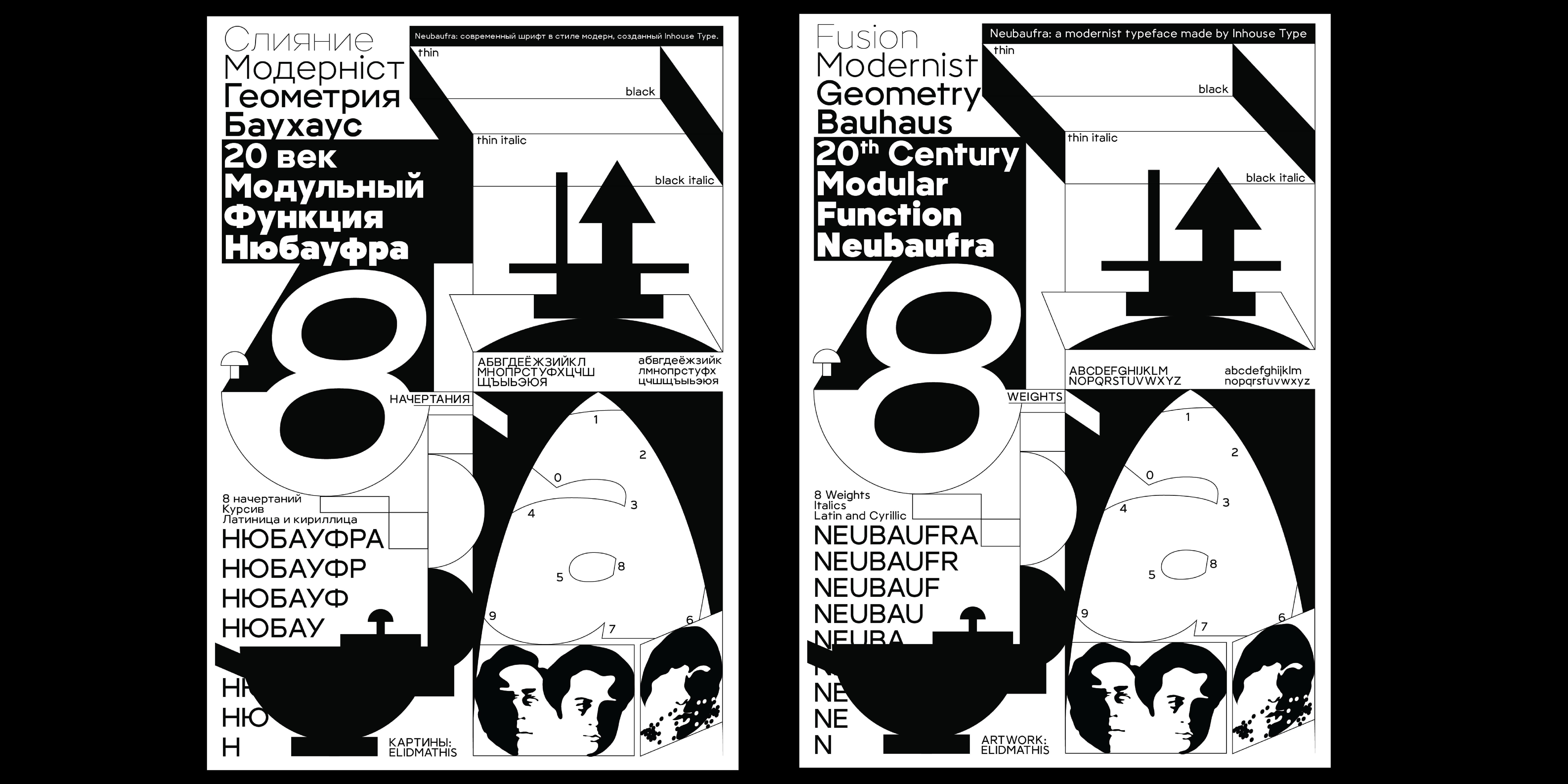 Neubaufra is a geometric modernist type family. Originally released in 2012 as Baufra, Neubaufra is a considerate restoration of the original work. Inspired by the early 20th century designs, Neubaufra gives special kudos to the Bauhaus influence. Complete with 8 weights + Italics, new design retained its prime modernist characteristics with the improvement to the legibility for text and web use. Extended language support includes Latin and Cyrillic.