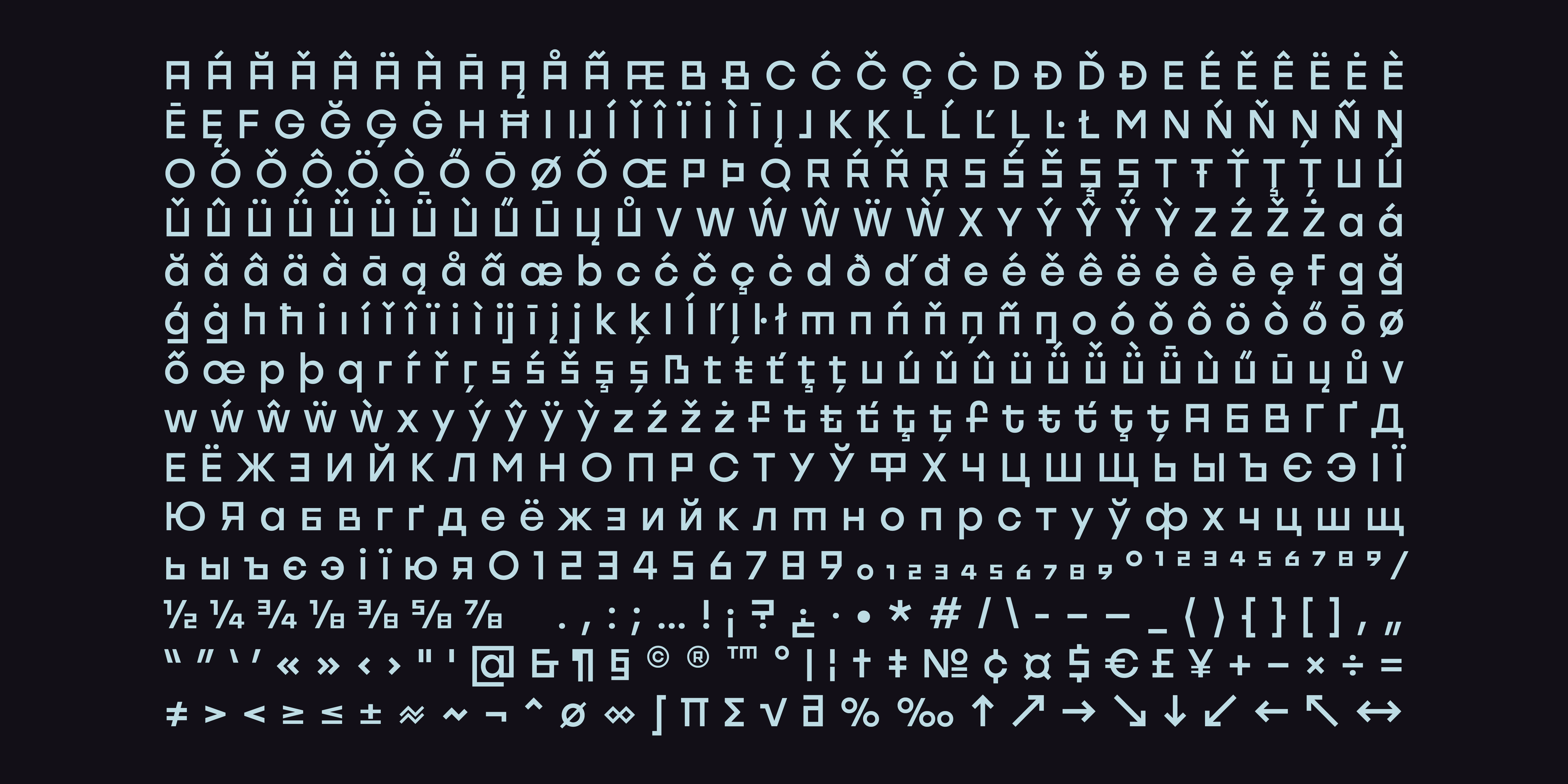 Stolzl is the text companion of the display family, Stolzl Display, which was optically tailored to perform as a functional addition to this concept steered font collection. Stolzl Text is a modernist interpretation of the first release, stripped of the primary stylised attributes, it is highly readable in print and on screen. Designed to perform at various sizes, Stolzl Text is a great addition to the type collection. As well as Latin-based languages, the type family also supports Cyrillic. Other details include six weights, 486 characters, manually edited kerning and Opentype features.