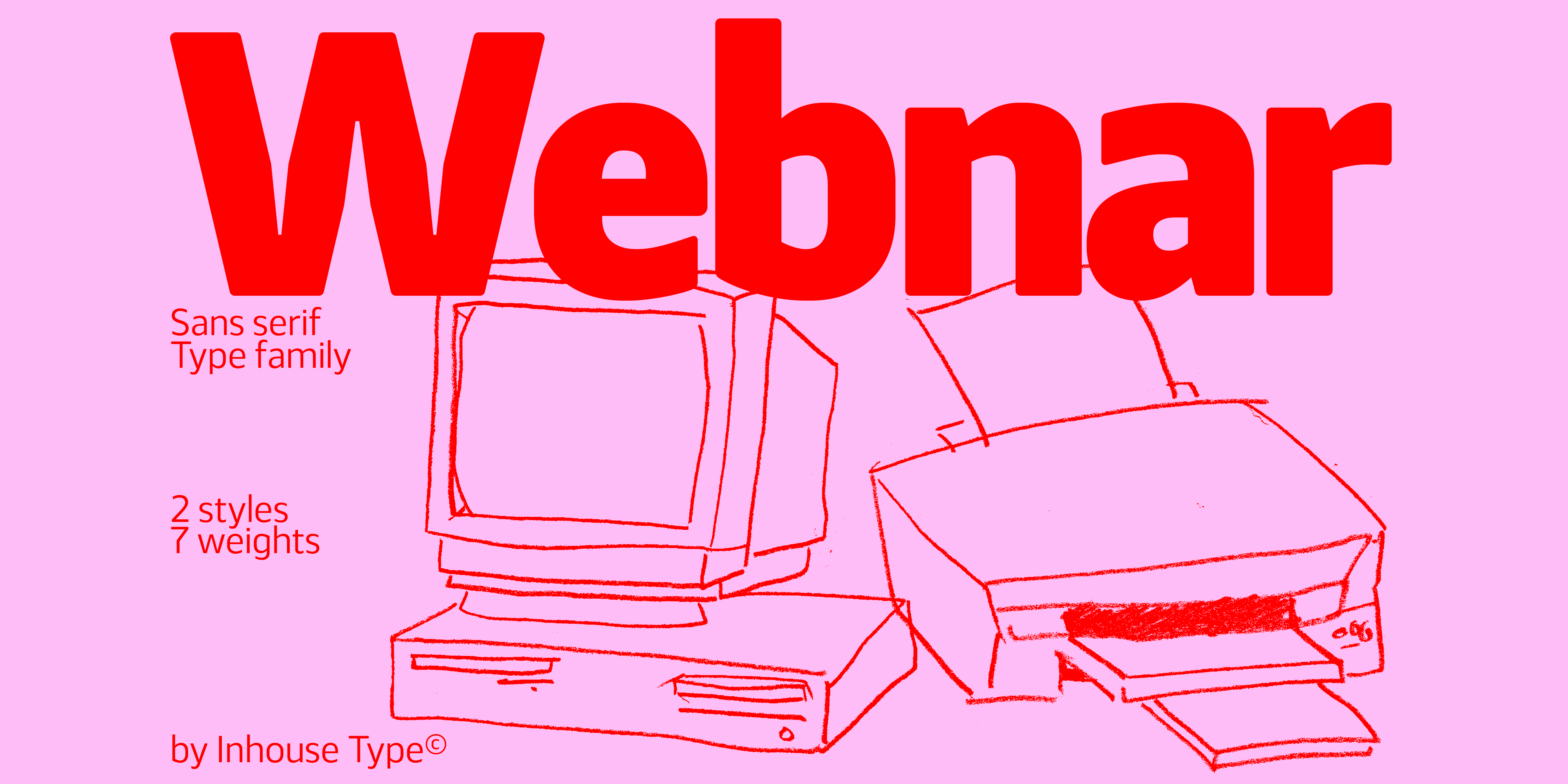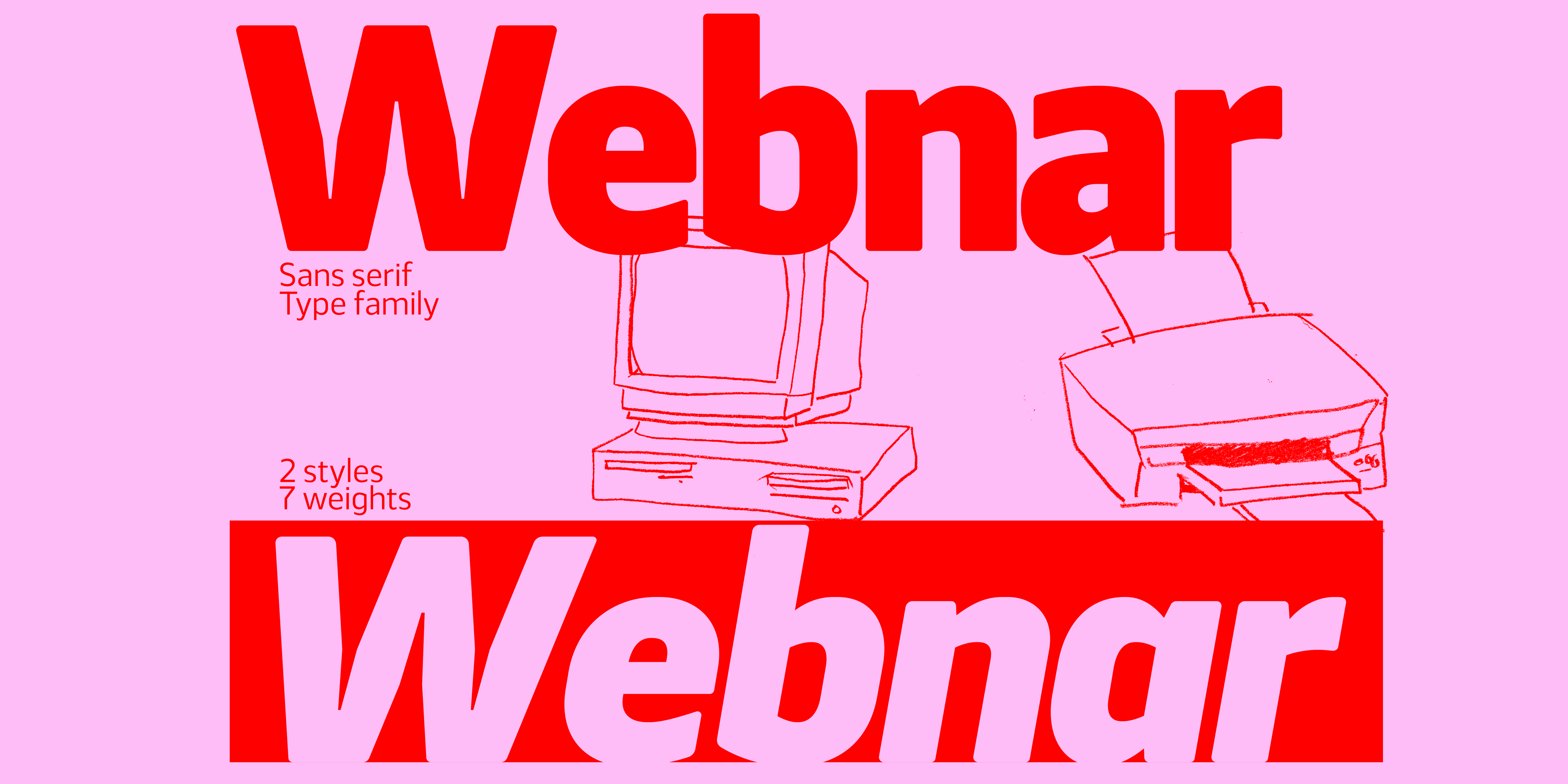 Webnar is a modern geometric sans serif font family of 7 weights, including italics, created with information and technology in mind. It is a functional, versatile and highly legible typeface designed to perform well in print and on screen. Webnar features a variety of alternative characters, including a set of geometrically constructed glyphs, inspired by Paul Renner’s original experimental design for Futura. They are perfectly suited for creating punchy and memorable headlines. Details include italics, 541 characters, extended Cyrillic, softened edges, carefully placed ink traps, manually edited kerning and Opentype features.
